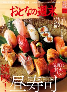 MISC 2021年9月14日 おとなの週末 2021年10月号 気軽に贅沢したい 満喫!昼寿司 夜のお寿司も楽しいけれど、昼のお決まりを頬張るのもまたオツなものです。今号は夜ほど肩肘張らず、少し気軽に贅沢できる昼寿司をピックアップ! ここ1〜2年で開業した新店、知っておきたい町の名店、銀座・日本橋の店からチェーン店、さらに家で作れる寿司レシピまで幅広くご紹介いたします。ほか、秋のパン、お茶の特集もあります。